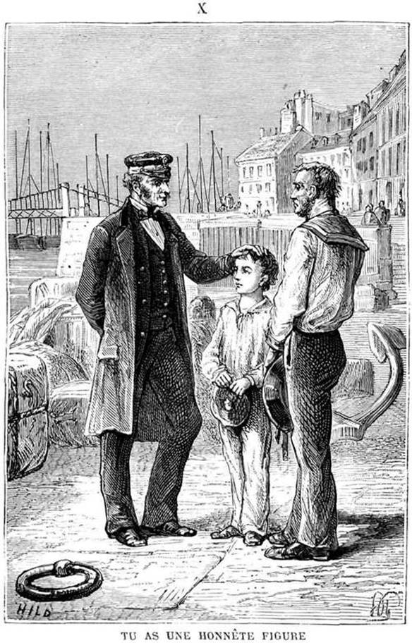 « Tu as une honnête figure, mon garçon, lui dit-il, et tu ressembles à ton père. Tâche de lui ressembler en tout, car c’était un brave marin. »