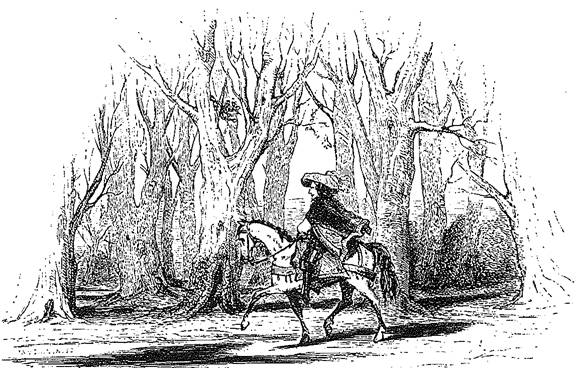 Les deux frères, impatients de vider leur différend, éperonnèrent vaillamment leurs montures, et laissèrent loin derrière eux écuyers et valets. Tout le long de la route, Roger chanta victoire, et accabla son frère de joyeuses et innocentes fanfaronnades. Celui-ci le laissait dire, sûr qu’il croyait être de triompher dans quelques instants.
