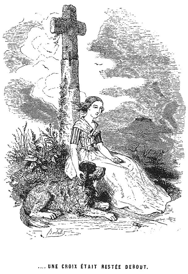 Il y avait au bout de l’ancien parc de Kerhoat un petit ermitage où, par hasard, une croix était restée debout. Henriette dirigeait volontiers sa promenade vers ce but, tandis que son aïeul faisait la sieste ou lisait. L’office le plus important de César était d’escorter la jeune fille dans ces excursions. Dès qu’il la voyait tourner la clef du jardin pour entrer dans le parc, sa contenance changeait. Il modérait subitement son allure et prenait un maintien fort grave, comme s’il eût senti l’importance de la responsabilité qui pesait sur lui. En vérité, sa protection en valait, pour le moins, une autre ; il avait le jarret ferme, l’œil perçant, et des dents à mettre en déroute une escouade de loups. Malheureusement les animaux féroces qui infestaient alors la France étaient beaucoup plus nombreux et plus méchants surtout que les loups.