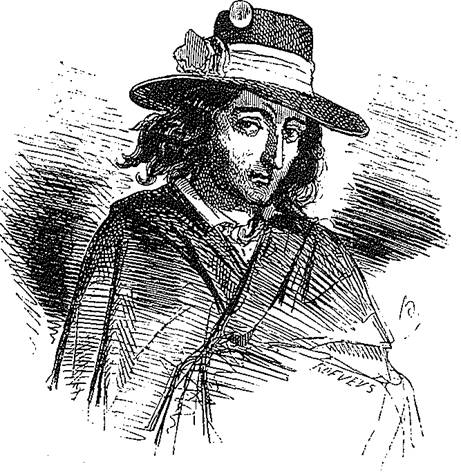 César sauta joyeusement vers le nouvel arrivant. C’était un homme de grande taille, dont la figure disparaissait sous les larges bords d’un feutre à cocarde blanche. Un vaste manteau drapé autour de sa taille cachait le reste de son costume. Il s’était arrêté sur le seuil.