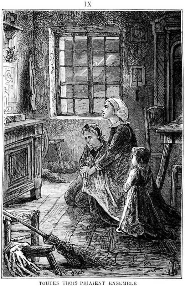 Alors Denise et Rosalie redoublaient envers elle de soins et de prévenances. Toutes trois priaient ensemble, et le calme rentrait peu à peu dans l’âme de la pauvre Marianne.