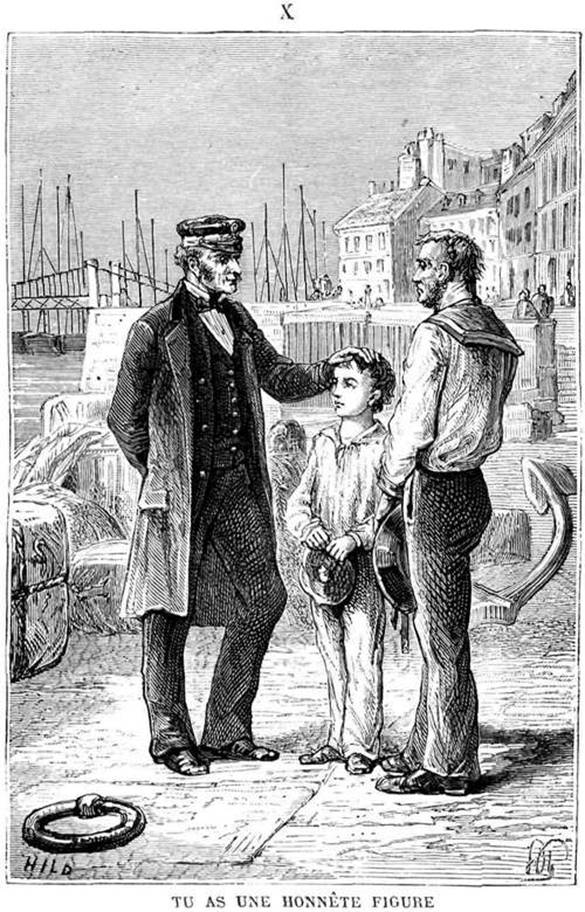 « Tu as une honnête figure, mon garçon, lui dit-il, et tu ressembles à ton père. Tâche de lui ressembler en tout, car c’était un brave marin. »