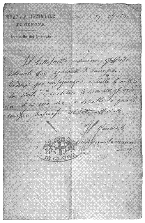 Mameli suo aiutante di campo. Ordina per conseguenza a tutte le autorità civili